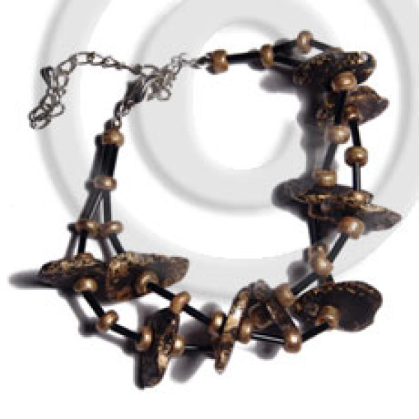 2-3mm coco Pokalet nat. brown hoop wire bracelet/adjustable shell & wood beads..