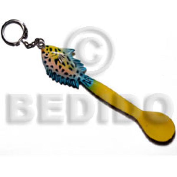 fish on spoon handpainted wood keychain 135mmx28mm / can be personalized text..