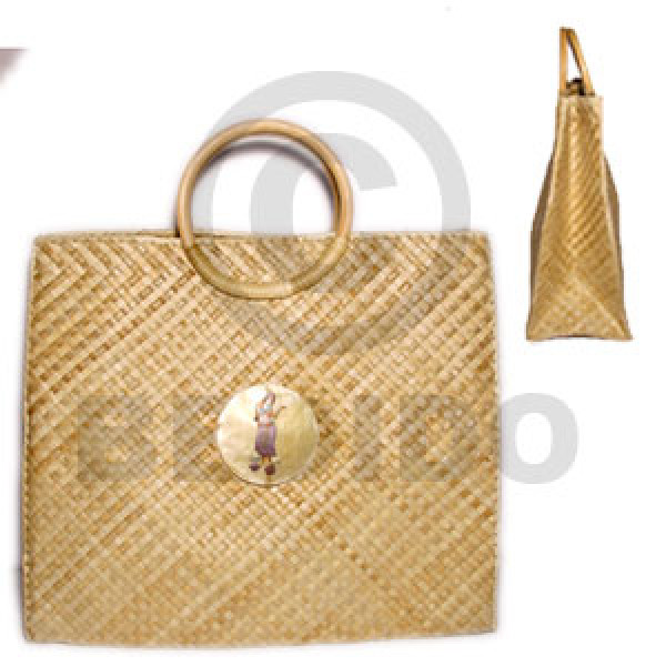 pandan lambat bag/ medium/ 9 1/2x2 1/2x 9 in. / handle 6 1/2 in dangling 40mm MOP scallop..
