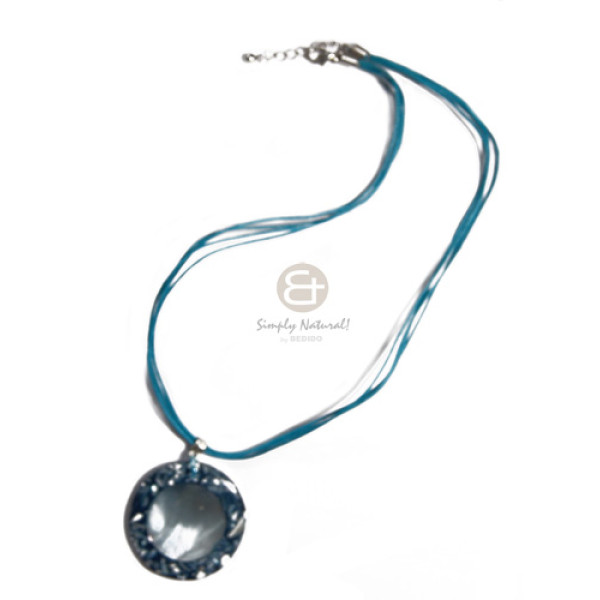 6 layer yellow wax cord matching 40mm round handpainted MOP pendant..