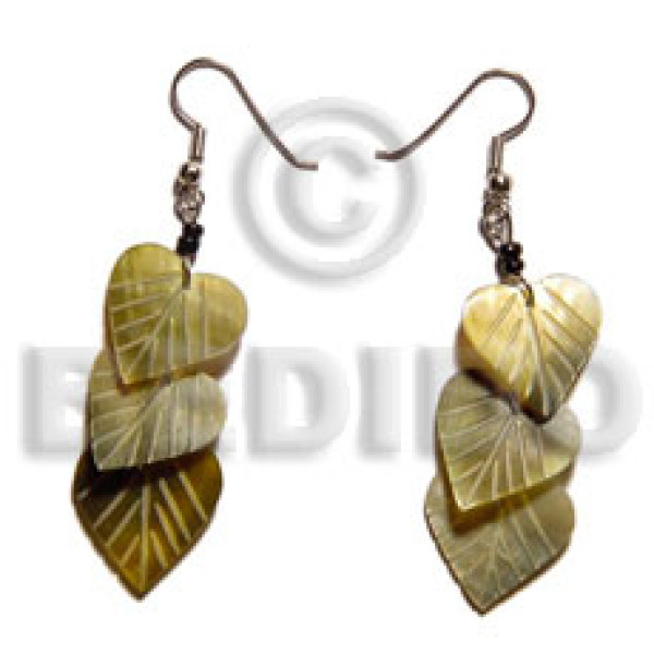 dangling 10x40mm aqua blue hammershell leaf and beads earrings..