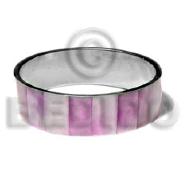 50mm round black resin ( 6mm thickness ) laminated crushed lavender capiz shells elastic bangle..