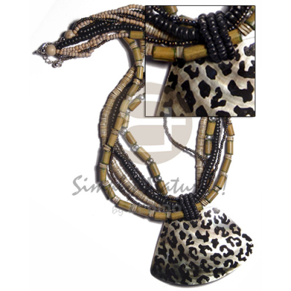 50mmx20mm inlaid back to back MOP & black resin pendant combination in choker wire 2-3 heishe black ..
