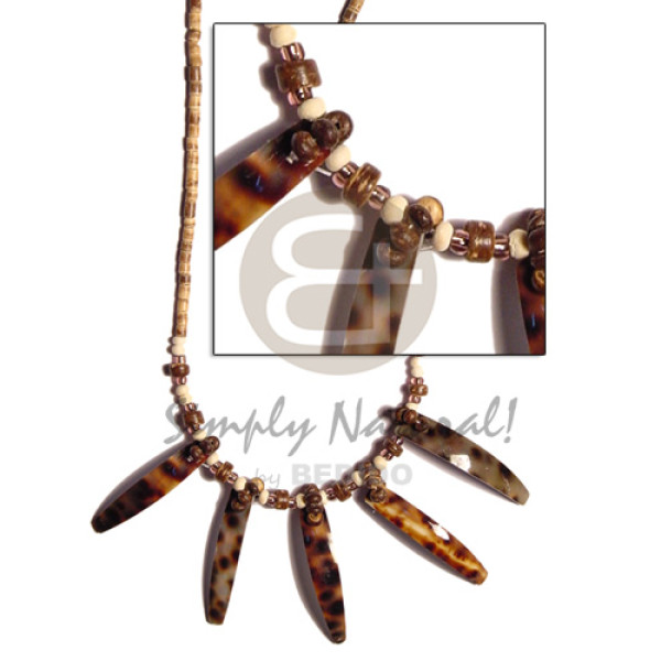 tassled 6 layers nat. brown & tiger 2-3mm coco pokalet 60mmx40mm oval black tab shell..