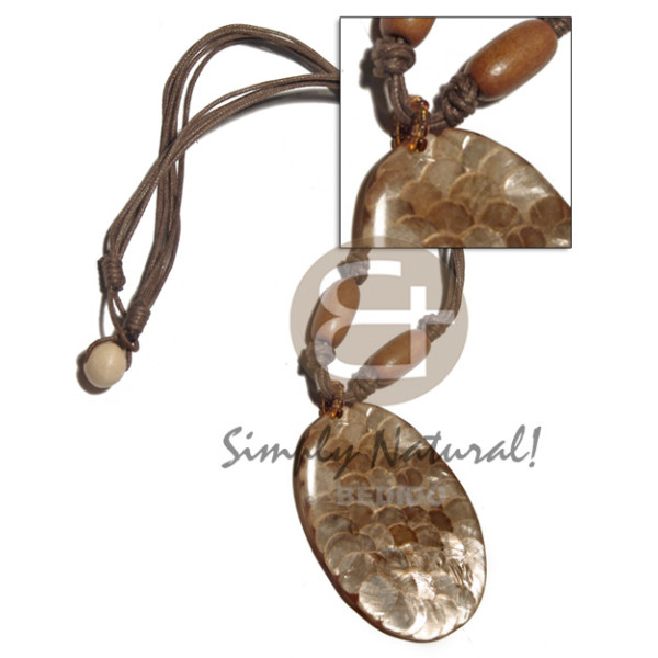 buri seeds in double wax cord square inlaid capiz pendant laminated in resin..