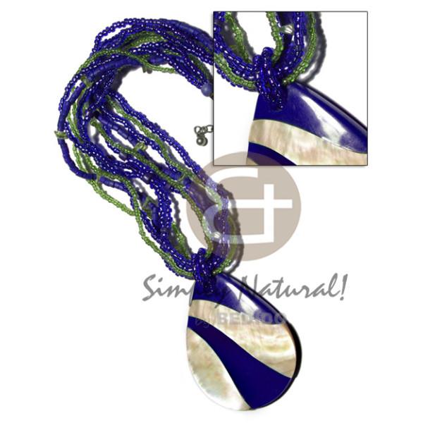 intertwined flat glass beads choker 40mm round capiz handpainted pendant..