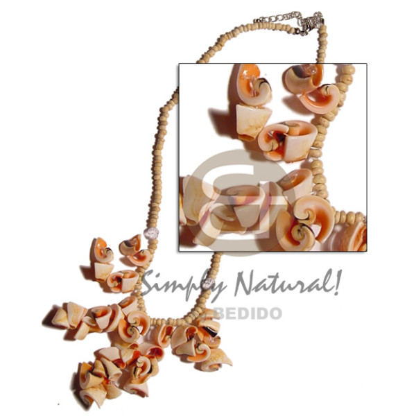 4-5mm bleach coco Pokalet. choker wire shells & 40mm scallop black tab pendant..