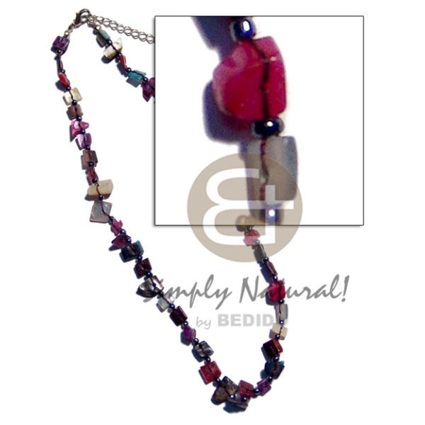 55mm brownlip heart pendant on 3 rows glass/cut beads combination / 18in..
