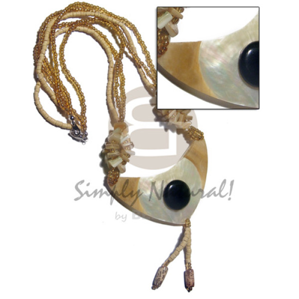 5 layers wax cord white clam & glass beads combination & 40mm black horn pendant..