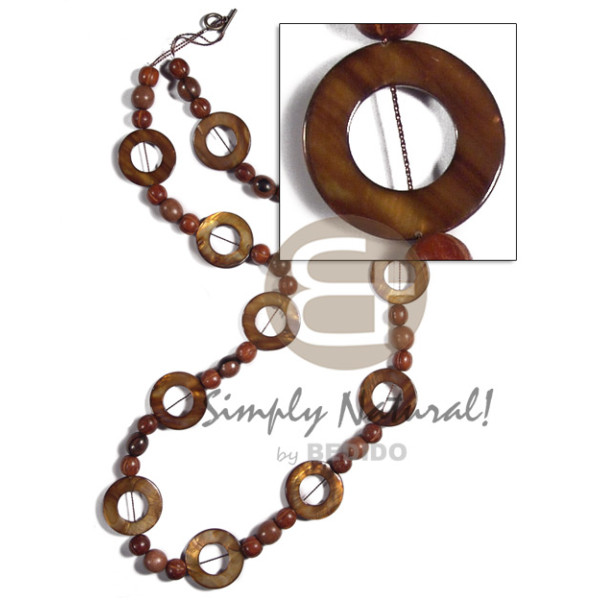 30mm round laminated golden amber kabibe shell rings ( 11 pcs. ) in high gloss wood beads accent / ..